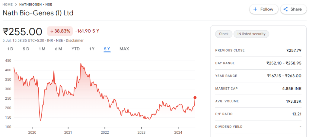 यहां पर बात करें ₹200 के अंदर अगर आप यहां पर देख रहे हैं तो Nath Bio-Genes काफी खास स्पेशल शेयर है जिसमें आपको यहां पर अपडेट मिल जाएगा 10 – 11 के PE पे आपको चल रहा है और अपने 52 वीक लो के आसपास भी शेयर यहां पर चलता हुआ दिखाई दे रहा है बाकी आप अपनी रिसर्च करिएगा अपने एडवाइजर से यहां पर जरूर पूछ लीजिएगा मेरा काम आपको बताना है जाते-जाते खास इनपुट आपको यहां पर देके जाऊंगा एक खास इनपुट है आपके लिए |